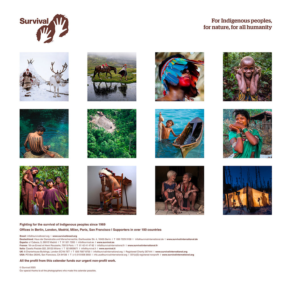 Acquistando “We, the people 2025” ci permetti di continuare a essere una voce libera e indipendente: Survival, infatti, non accetta fondi da governi e società che violano i diritti dei popoli indigeni. Ci autofinanziamo solo grazie alla generosità dei singoli, e i proventi delle vendite del calendario rappresentano una delle nostre entrate più importanti.